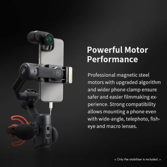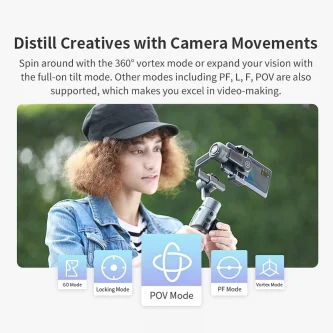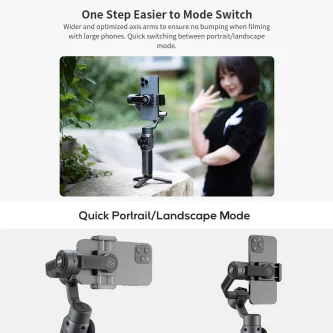 - Low & Wide Angle Photography: Shrinking 40% of the body, with motor at the rear, no blocking of smartphone lens while filming, convenient for low and wide angle photography.