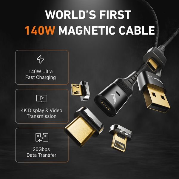 The Volta Max 240W 6-in-1 magnetic cable is the first of its kind, featuring an unprecedented combination of 240W power, a 4K Display and USB 3.2.