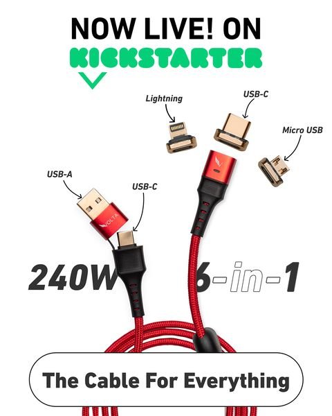 VOLTA Max – the World’s First 6-in-1 Universal 240W Magnetic Fast Charging USB 3.2 Cable for ALL Apple Lightning, Micro USB, & USB-C devices/Laptops.